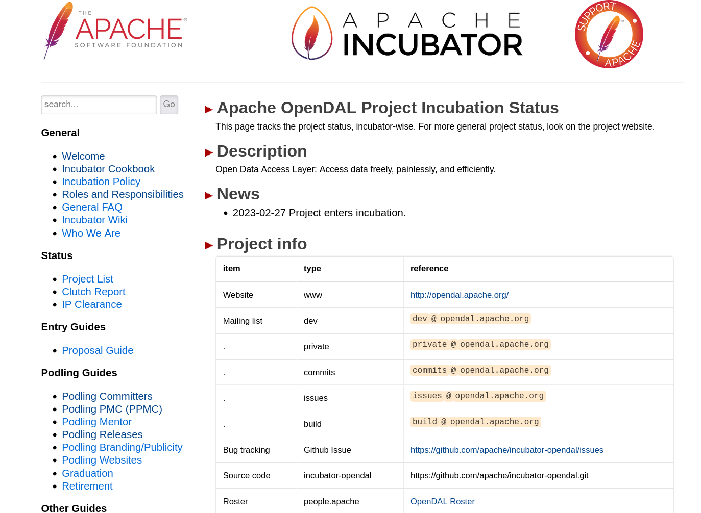 On February 27th, 2023, the OpenDAL project achieved a milestone by winning the approval to join the incubator of the Apache Software Foundation (ASF), the world's leading open source software organization. On March 15th, the OpenDAL project was officially transferred to the Apache Software Foundation.