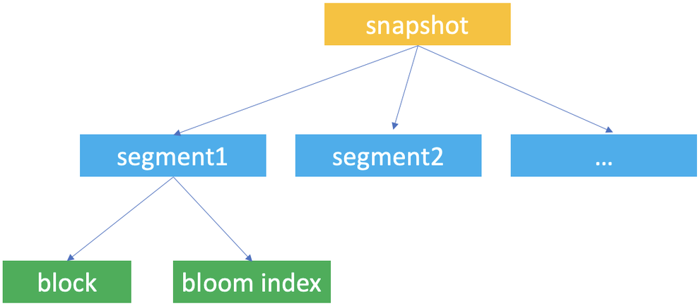 Snapshot, segment, and block are the concepts Databend uses for data storage. Databend uses them to construct a hierarchical structure for storing table data.